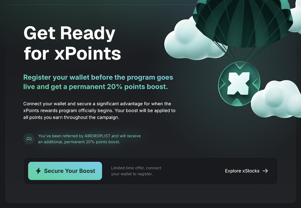 2026年3月11日、xStocksのポイントプログラムの事前登録が開始。(事前登録で20%のポイントブーストあり)株式のトークン化はマーケットサイズが非常に大きく、今後さらに拡大する可能性が高いため、今のうちに張っておくと良さそう。